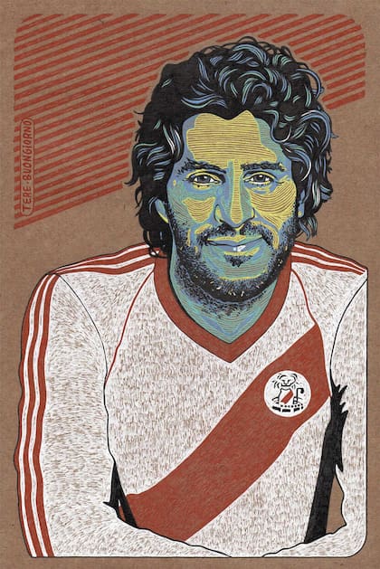 En esos años Hugo Santilli asumió la presidencia de River y quería cambiarle el mote de gallina al club. Entonces decidió crear una nueva mascota. Creo que él pensó en un águila y a mi viejo se le ocurrió un león. Cuenta Santilli que se juntaron en un restaurante, despejaron la mesa y mi papá dibujó sobre el mantel de papel la idea del león emergiendo del Monumental. Después lo terminó de perfeccionar mi tío Claudio. Con esa camiseta salimos campeones de todo y los jugadores no la querían cambiar por cábala.