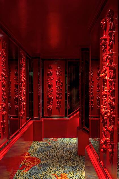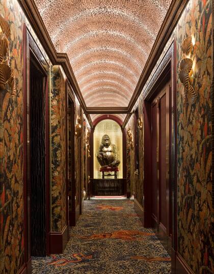 Brudnizki impuso una especie de millennial hipster style sobre la decadencia que ensombrecía la historia del club. Salones transformables en experiencia gastronómica, de trabajo o para cuestiones lúdicas convierten al Annabel's en un sitio actual y versátil, en el que su público se divierte en la chaise longue del baño de mujeres o con búhos, zorros y tejones en el masculino. "Aplicamos magia y juego –dice el diseñador sueco–: sanitarios con forma de troncos de árboles y un oso de tamaño natural frente al espejo que refleja un ataque mientras el visitante se lava las manos".