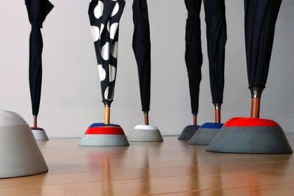 Todos alguna vez nos enfrentamos al problema que representa tener que guardar el paraguas al llegar a casa luego de un día de lluvia. Ante esa necesidad los diseñadores del Atelier Non Useless crearon un soporte de concreto simple y divertido. El paragüero ocupa muy poco espacio (tiene 9 cm de alto y un diámetro de 16) y cuando no se está usando permite vaciar el exceso de agua.