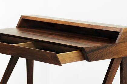 El estudio serbio Lampemm se caracteriza por trabajar la madera en su estadio más puro, resaltando sus características naturales y este es escritorio es una muestra. Según sus realizadores fue construido para durar y está inspirado en la geometría y la arquitectura de los edificios públicos de mediados del siglo 20. Además, la madera fue especialmente pulida para crear una superficie reflectante que cambia su apariencia dependiendo del ángulo de visión.