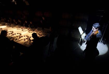 Acto seguido, probamos un Cabernet Sauvignon 2007, y al momento de llevar la copa a los labios, ¡paf!, se prende otro foco en el otro extremo de la mesa, y de la oscuridad surge un violoncelista que nos iría regalando obras de Haëndel, Bach, Mahler y otros maestros.