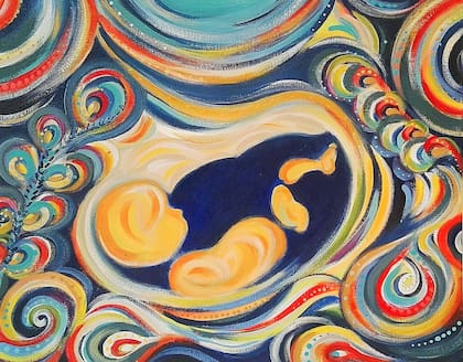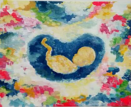 Ella había empezado a pintar las ecografías de su propia hija después de algunas complicaciones durante el embarazo. A pesar de la falta de movimiento, cada eco le decía que estaba bien. Sin embargo, las imágenes grises y borrosas no le provocaban el amor que ella sentía por su hija. Entonces empezó a pintar para darle color y vida a su bebé.
