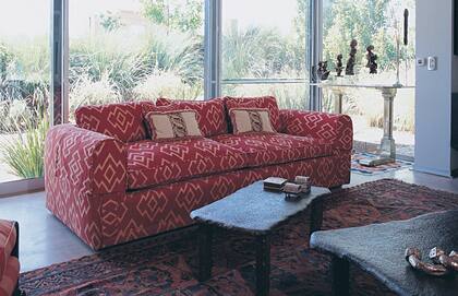 - El sillón de un cuerpo en madera clara marca otro sector dentro del ambiente, con un estilo que no desentona al conectar el género con el del tapizado de las sillas.