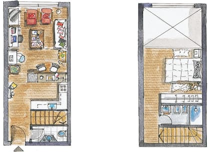 Hoy, dos años y medio después de aquella mudanza, la casa ha encontrado la sintonía perfecta entre comodidad y espacio, delineando sus ambientes acorde con las necesidades de sus propietarios. Así, un escritorio de trabajo, ubicado dentro del living, se integra a la vida cotidiana sin mayores discordancias, al tiempo que la barra ha logrado optimizar el espacio suplantando una posible mesa de comedor. En el futuro del departamento, además, se vislumbran cambios mayores: "Estamos pensando en extender el semipiso hasta la altura de la ventana superior, para convertirlo en un piso completo que permita agregar un nuevo dormitorio", relata Javier. Segundos después, el motivo de la reforma se colará entre sonrisas y alegrará aún más el panorama: "¡Vamos a ser papás!"