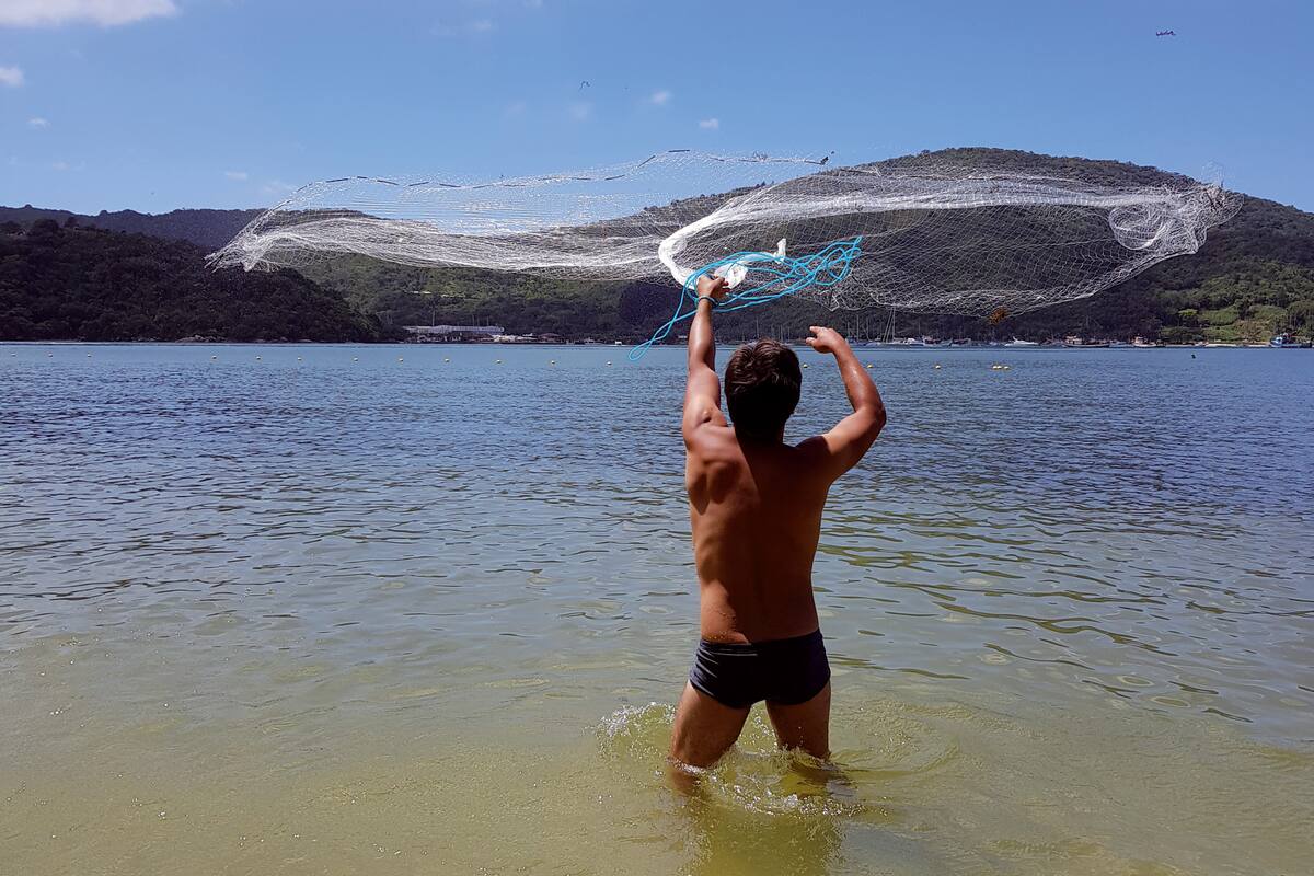 Nueve meses después, pudimos resolver el asunto de la comida fresca, sin heladera. Tejimos redes para colgar la fruta y la verdura (que compramos madura para el día y verde para que madure sin apuro); descubrimos que el queso y la manteca sobreviven a temperatura ambiente; aprendimos a cocinar con carnes conservadas en sal; y Juan empezó a cazar con arpón. Esto último nos cambió la alimentación de forma radical: casi todos los días almorzamos pescado recién sacado del agua, en forma de ceviche, a la cacerola, entero y frito, en isca, o como risotto con leche de coco, curry y arroz.