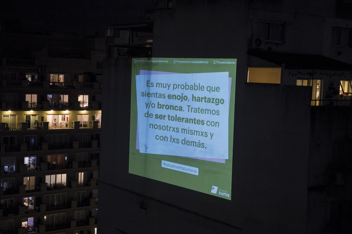 Desde la sociedad civil, el Proyecto Suma hizo una campaña consistente en proyectar en edificios de la ciudad de Buenos Aires frases como "Las redes las tejemos entre todos, la salida es colectiva", "No menosprecies ni exageres las medidas de cuidado y autoprotección" o "El distanciamiento es físico, no emocional, social o cariñoso". Más allá del apoyo psicosocial, nosotros seguimos en nuestras casas bailando al ritmo de "Living la vida zoom" hasta que llega un amigo y nos pregunta: "Y vos, durante esta pandemia, ¿qué aprendiste?".