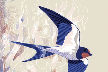 Mientras, apenas amanece. Sobre el lago calmo vuelan centenares de golondrinas, tan al ras que parece imposible que no toquen el agua. Pero comen pequeños mosquitos que cayeron en vuelo al agua durante la noche. Van y vienen en círculos, me pregunto cómo no se chocan. Durante una hora las observo, quiero ver si alguna toca el agua con las alas. No lo hacen: tienen un entrenamiento asombroso. Migran todos los años desde Canadá, en un largo viaje. ¿Cómo pueden estos pequeñísimos pájaros hacer semejante trayecto, tan desproporcionado a su tamaño, viajando hasta ciento ochenta kilómetros por día?