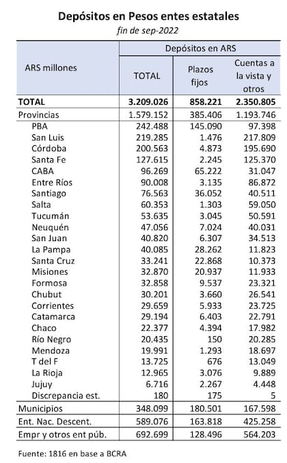 En una tabla vemos los miles de millones de pesos que tiene el sector público en bancos nacionales. Municipios 348 millones de pesos. Las provincias, un billón 500.000 millones de pesos. Ahora los están obligando a que esos pesos se transformen en títulos. Así y todo, con esta enorme presión de Massa sobre los tenedores de pesos del Estado, solo logró renovar el 84% de la deuda, es decir, le prestan cada vez menos. Va hacia un problema grave porque en enero, febrero, marzo va a haber vencimientos de un billón de pesos y más, y en junio va a haber uno de un billón, 800.000 millones de pesos. Mientras tanto, el discurso general es: “Qué nueva oportunidad nos está dando el mundo por la guerra”.