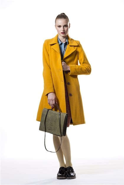 Tapado de paño con guarda (Perramus, $ 1950), vestido minimalista (Giesso, $ 916), mocasines con plataforma (De María, $ 1690), cartera de cuero (Prüne, $ 1150)