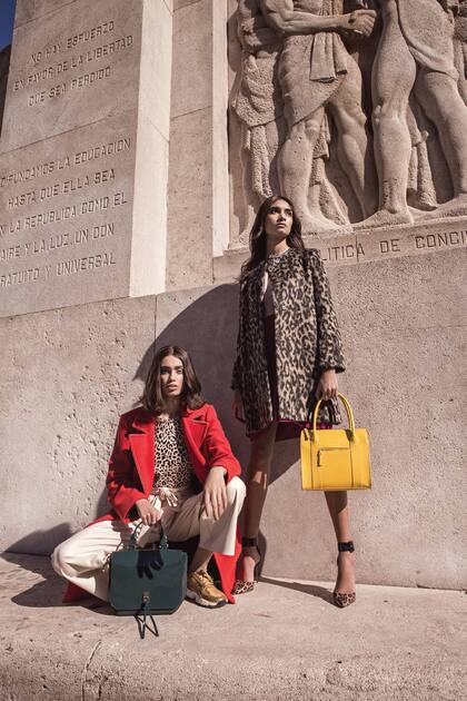 Tapado de lana en animal print (Giesso), vestido bicolor (Perramus), cartera de charol (Mishka), zapatos animal print (Aldo para Grimoldi)
