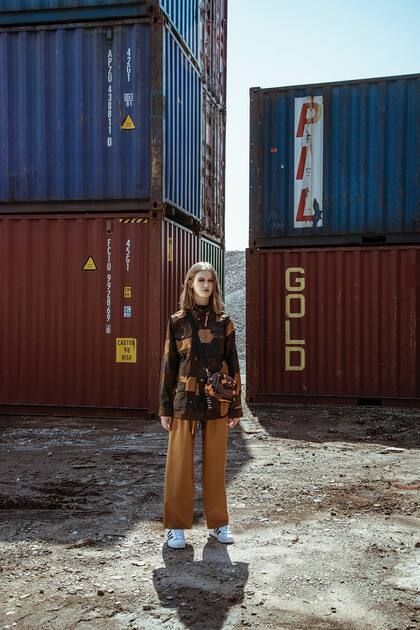 Campera camuflada, Bensimon, pantalón de cuero, Mishka, zapatillas, Adidas Originals, bandolera, Prüne
