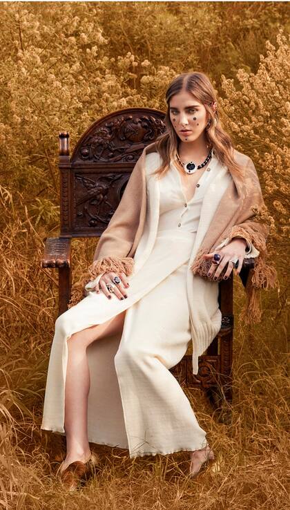 Foto de tapa: Inés Muguruza; Vestido hecho en telares manuales, hilado fino a mano % 100 lana de oveja sin tintes, camisa de gasa con lazo, pantalón espigado tejido en telares manuales, hilado fino a mano % 100 lana de oveja combinado con terciopelo, (Manto, $ 4900, $ 2300 y $ 3900), tiara (Oleana), anillos en mano y pulsera (María Medici, $ a partir de $ 700 y $ 780), anillos en nido (Oleana, $ 3600), mocasines con corderito y hebilla (Chicco Ruiz, $ 2900)