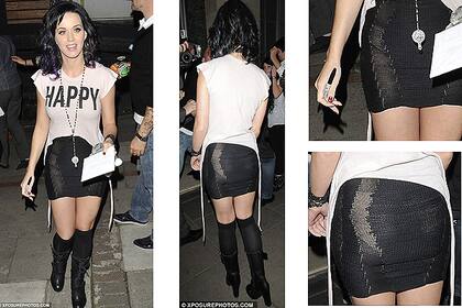 Katy Perry demostró que se pone lo que se le da la gana, más allá de las modas. Algunas veces acierta y otras no, como con su look a la salida de una entrevista en los estudios ITV. La cantante llevaba una mini tejida con la que se le transparentaba su ropa interior, digna de una abuela más que de una joven de 25 años.