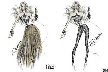 El italiano Roberto Cavalli fue el encargado de confeccionar el conjunto que llevará la cantante colombiana en la fiesta de este viernes en Johannesburgo; mirá el boceto