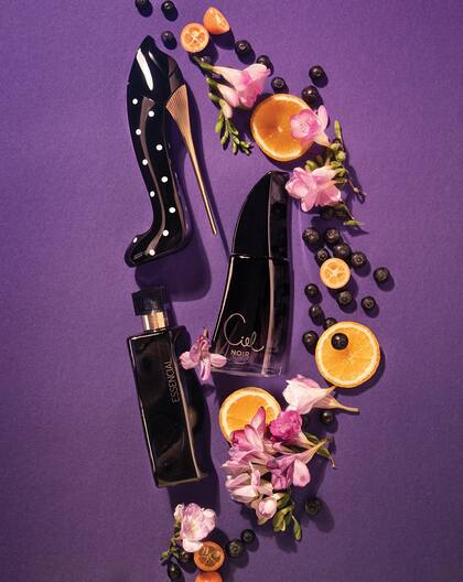 - Acordes de tuberosa, flor de naranjo, magnolia, iris y grosella negra (EDP Ciel Noir).