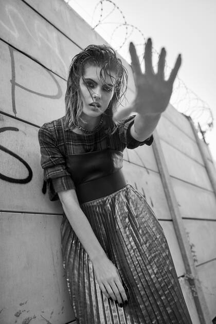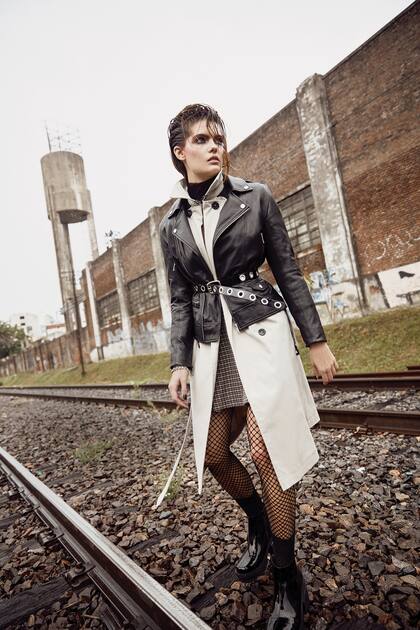 Cuero, tartán y borcegos en una versión remasterizada de la estética rebelde de los años 70 Estilismo: Lorena Gersztein