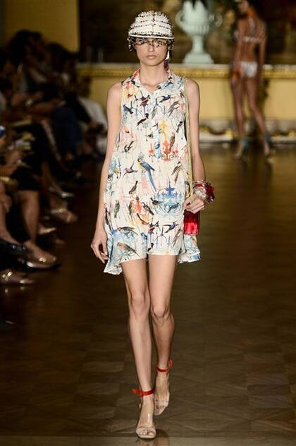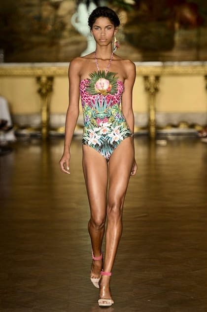 Todo es literal, claro, como quien no quiere dejar lugar a dudas. Es más, la colección se presentó en el imponente palacio del cónsul de Portugal en Río de Janeiro. Bajo esta mirada positiva de lo que fue la conquista, las estampas que mejor funcionaron -según Lago- son una animal print de piel de onza con la textura del pelo y los toques de un glamoroso rosa y grandes hojas selváticas; una denominada Panorámica, donde en monocromía verde se ve la fauna tropical y las icónicas palmeras imperiales, y una última azulada con postales antiguas de cómo eran los lugares icónicos del Brasil colonial.