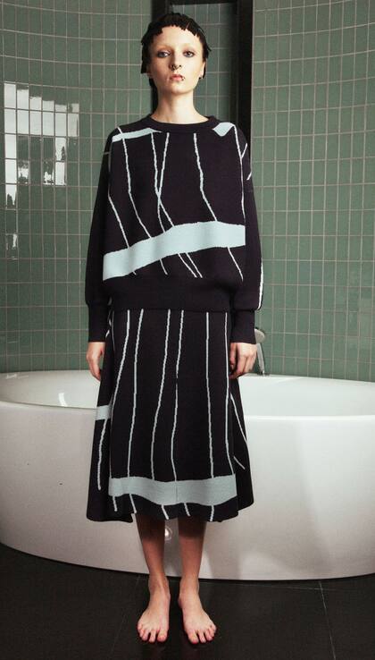 Para esta china, el London College of Fashion y el Royal College of Art también fueron pasos obligados o, más bien, elegidos para estudiar diseño de moda de mujer y tejido de punto. Y demuestra haber aprendido muy bien, con un evidente talento natural. En un par de años acumuló premios, entre otros, el Fashion Scout’s Merit Award; fue nominada para el prestigioso galardón que otorga LVMH y, como parte del Programa de Intercambio Internacional de Diseño de Mercedes-Benz en Londres y Pekín, anteayer presentó su invierno, con piezas arquitectónicas, bien bubble, con megatejidos, faldas plato, pantalones anchos, para una silueta holgada.