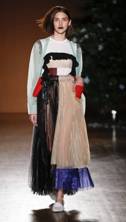 Dice que aprendió a tejer con los tutoriales de YouTube. Pero, claro, no fue su única formación; como casi todos los que llegan al país británico, este hongkonés estudió en el London College of Fashion, y es parte de The Fashion East Association, entidad que apoya a los diseñadores emergentes, creada por la gurú de la moda y cazatalentos Lulu Kennedy, que lo promueve. El tejido es su fuerte, con dibujos inspirados en la cultura pop, y es uno de los que le gusta aludir a su niñez. Estampas lúdicas y coloridas, para prendas hiperrománticas, vistas el viernes último en LFW, bien engamadas en un total look original con una paleta fuerte y sweety, a la vez, que va del rosa, fucsia, salmón, violeta al azul.