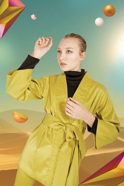 Kimono de taftán y pantalón sastrero, Mishka, polera de lana, Giesso