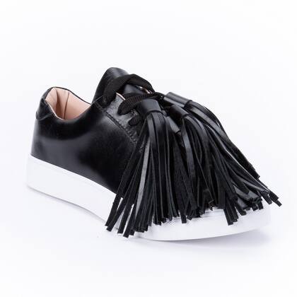 Valdez la rompe con sus zapatillas de flecos a un precio especial de $3920 tras el descuento del 20%.