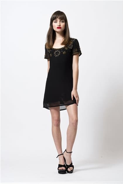 Vestido negro bordado (Paula Cahen d’ Anvers, $ 1850) y sandalias de gamuza (Grimoldi, $ 850) Tip: usá este vestido con leggings y ballerinas