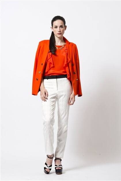 Blusa de seda (Etiqueta Negra, $ 1300), pantalón damero (Basement, $ 450), blazer de algodón (María Cher, $ 2200) y sandalias con plataformas de charol (Paruolo, $ 1519)