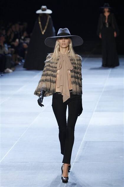 Inspiración: Hedi Slimane debutó en la casa y fusionó una estética rockera oscura, bien años 70, con algunos códigos de Yves Saint Laurent. Se destacó la silueta súper slim, favorita de Slimane.