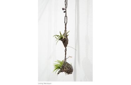 Un avant-jardinero formado en bellas artes y escultura, que sorprende con sus collares: pequeñas macetas tejidas al crochet unidas en una cadena también de hilo. Una creación lista para adornar el eco consciente. Y también "una manera original y fácil de llevar a cuestas parte de tu naturaleza favorita". De culto.