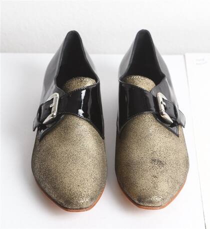 Mocasines de cuero crack y charol con hebilla (Mishka, $ 1328)