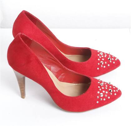 Stilettos de gamuza con tachas (Vía Uno, $ 579)
