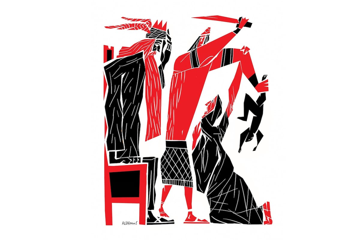 Dos madres compartían habitación. Cada una había dado a luz un niño. Por la noche, una se reclinó dormida sobre el niño, y lo asfixió involuntariamente. Cuando despertó, tomó el bebé dormido de su compañera de cuarto y colocó el bebé muerto en su lugar. Por la mañana, cuando la otra mujer despertó, encontró al niño muerto y comenzó a lamentarse. Pero después de examinarlo se dio cuenta de que no era su hijo. Las dos comparecieron ante el rey Salomón. "¡Este niño es mío!", gritó una. "¡No, el niño muerto es el tuyo!", replicó la otra. Salomón ordenó a un guardia que tomara su espada y dividiera al niño vivo en dos. Una se arrojó a los pies del rey y suplicó, "¡Dele el niño y no lo mate!". Pero la otra dijo: "Ni para mí ni para ti, que lo partan". Entonces Salomón supo quién era la madre.
