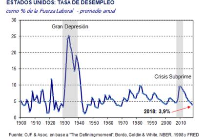Con los anteriores presidentes y sobre todo con Donald Trump el desempleo fue bajando y ahora está en 3,5% de la población activa, uno de los más bajos del mundo en la actualidad. Pensemos que 5% es la tasa de desempleo estructural, o sea, que debajo de ese valor hay un desempleo muy bajo.