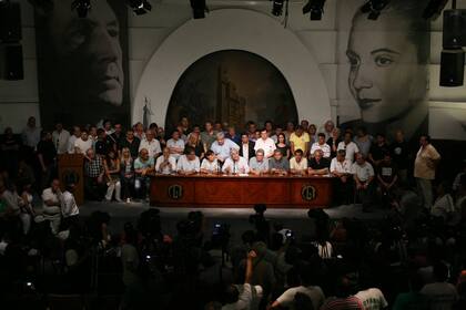 En una impensada alianza, la CGT de Moyano y la CTA de Micheli convocaron a un paro general, con piquetes y cortes, y desplegaron su unidad para la foto.Foto: Mariana Araujo