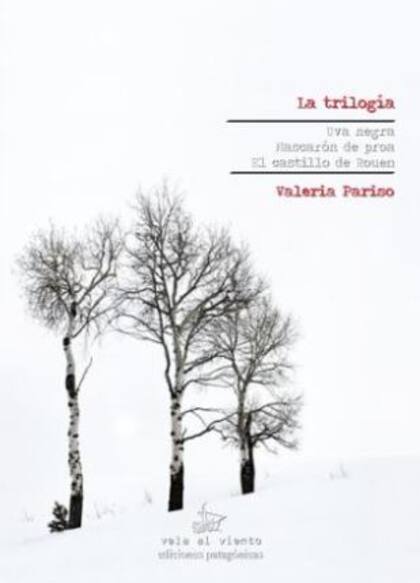 Desde el sur, llega a la redacción un libro envuelto en papel madera. Solo en el departamento, abro el paquete y leo la dedicatoria. Después, un breve poema de tres versos de uno de los libros de Valeria Pariso, ahora reunidos en La trilogía, volumen publicado por la editorial patagónica Vela al Viento. Es el poema 11 del primer libro de Valeria, titulado Uva negra.