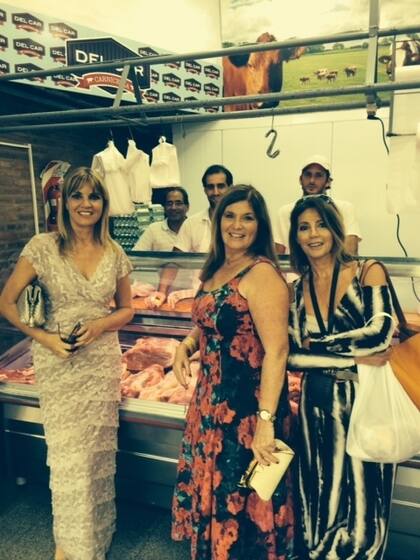 Nuestro viaje no terminó ahí. Un señor tímido nos dio las coordenadas para llegar a la mejor y más económica carnicería del lugar. Y una vez cargadas las bolsas, hacia allí nos dirigimos. Me gustaría describirles la cara de la gente que estaba en la puerta del negocio y de la que pasaba por la calle donde estacionamos. No podían creer que bajaran del auto en una calle sin veredas, con un costado de tierra, tres ejemplares así producidas. Cada una sacó su número para ser atendida. Mientras esperábamos algunos se animaron a sacarse fotos con sus celulares. Así, por turno, Teté pidió 3 kilos de asado, carne picada especial y milanesas de peceto. Sofía pata y muslo, los 3 kilos a precio de la pizarra. Yo las pechugas -14 pesos menos por kilo que en el chino de la vuelta de mi casa- y una tapa de asado. Después de pagar nos sacamos una foto con los muchachos y salimos encantadas con nuestras compras.