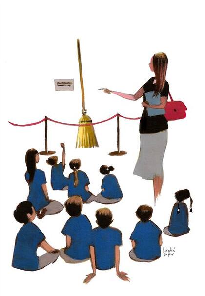 Cuando la perseverante y simpática Miss se llevó a sus alumnos a explorar, en esa misma sala del nuevo edificio de la Tate Modern, un laberinto de petates de Cristina Iglesias, yo me quedé todavía un rato frente a este "objeto estético", el palo de escoba pintado por un artista cuyo nombre decidí no averiguar; tampoco quise saber el título con que había bautizado a su "escultura conceptual". Pensaba en la difícil empresa de esa profesora: convencer a esos niños de que aquello representaba el arte de nuestro tiempo, que había en ese palo pintado toda esa suma de que consta una obra de arte genuina: artesanía, destreza, invención, originalidad, audacia, ideas, intuiciones, belleza. Ella estaba convencida de que era así, porque, en caso contrario, hubiera sido imposible que asumiera con tanto empeño lo que hacía, con esa alegría y seguridad con la que hablaba a sus alumnos y escuchaba sus reacciones.