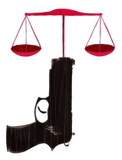 La exégesis tribunalicia que siguió a ese hecho inaudito no hizo sino desenmascarar la ideología invertida que carcomió la legitimidad de la ley: tenencia o portación, legítima defensa o exceso de legítima defensa, pistolón con o sin municiones o gatillo... Como si tras ser golpeado con un arma en la cabeza y arrollado por el agresor, en una suerte de ruleta rusa, se tuviera que tomar la precaución de averiguar si el arma está disponible para ser disparada. En los instantes en que se juega a vida o muerte no hay tiempo para hacer un peritaje de la capacidad ofensiva de un pistolón. Y así como si tiene cuatro patas y ladra, entonces es un perro, análogamente si tiene culata, armazón y cañón, es un arma de fuego.
