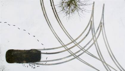 Es probable que el mayor mérito de una foto sea que no se la pueda contar en palabras; es decir, que se imponga por sí misma y no admita ser reducida a las palabras. Pero siempre hay una historia. Las pisadas nítidas en la nieve, las marcas de las ruedas y el espacio sin nieve, quemado, donde estuvo estacionado el auto -del que queda sólo su silueta- construyen una escena posible, y aun la historia mínima: la de la persona que subió a su auto y se fue del estacionamiento de Sehnde, cerca de Hannover. Pero siempre existe también otra manera de mirar. Aquello que vemos es también una composición de manchas y líneas, que son complementarias, porque en cierto modo la mancha es la contracara de la línea. Un juego de formas. Las líneas de las ramas de un árbol, las líneas, diferentes, de las ruedas. El pintor estadounidense Mark Tobey solía repetir que la misión principal del artista consistía en encontrar lo abstracto en la naturaleza. Esta imagen le habría gustado mucho.