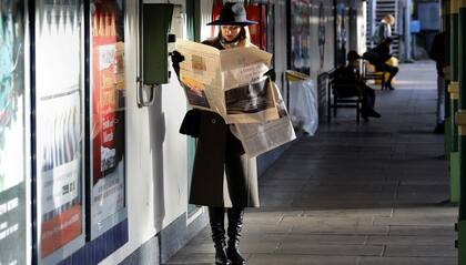 En Leyendo imágenes, uno de sus libros más deliciosos, Alberto Manguel nos invita a que nos aproximemos a una serie de obras de la historia privada del arte para que cada uno de nosotros encuentre en ellas un nuevo sentido. Ver, nos dice, es un modo de leer imágenes y en cada una de esas lecturas cada quien dejará una huella de su biografía. Este retrato de una mujer en el otoño londinense, mientras aguarda un subte en el andén de una estación, podría integrar la campaña publicitaria de una marca de indumentaria. Pero cualquier habitante de una redacción, amenazada como está la industria gráfica por los cambios de hábito en el consumo de noticias, verá en ella cierta poética del oficio periodístico y de la lectura. En ese caso, llama la atención la concentración en la lectura, aun en la incomodidad de desplegar el diario al aire libre y sin un punto firme de apoyo. El gesto antiguo de un tiempo que perdura en medio del vendaval de la modernidad.