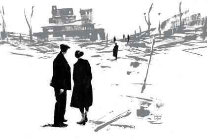En medio de una muerte multiplicada como la peste, como Malaparte pretendía llamar a La piel antes del éxito de la novela de Albert Camus, los civiles arrasados por las bombas aliadas son tantos ("destrozados, desmembrados, irreconocibles") que los soldados se alquilan a particulares para retirar los escombros y recuperar lo que se pueda.