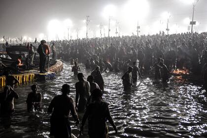 La imagen, tomada ayer, muestra una escena del festival Magh Mela, que se realiza todos los años en la confluencia de tres ríos sagrados de la India: el Yamuna, el Ganges y el mítico Sarasvati, tres de los siete que se mencionan en el Rig-veda, una antigua compilación de himnos en sánscrito védico. La confluencia es conocida como Triveni Sangam, un lugar santo para los hindúes, donde los fieles se sumergen en las aguas como una forma de purificar errores y pecados. Aunque el ritual de la sumersión es lo más importante de esta multitudinaria reunión, el festival también consta de otras actividades, algunas comerciales, otras religiosas. Aunque la ciudad sigue llamándose Allahabad, oficialmente se la denomina Prayagraj, y queda en el estado de Uttar Pradesh. Es el mismo estado donde se erige el incomparable Taj Mahal, en Agra, unos 430 kilómetros hacia el noroeste.