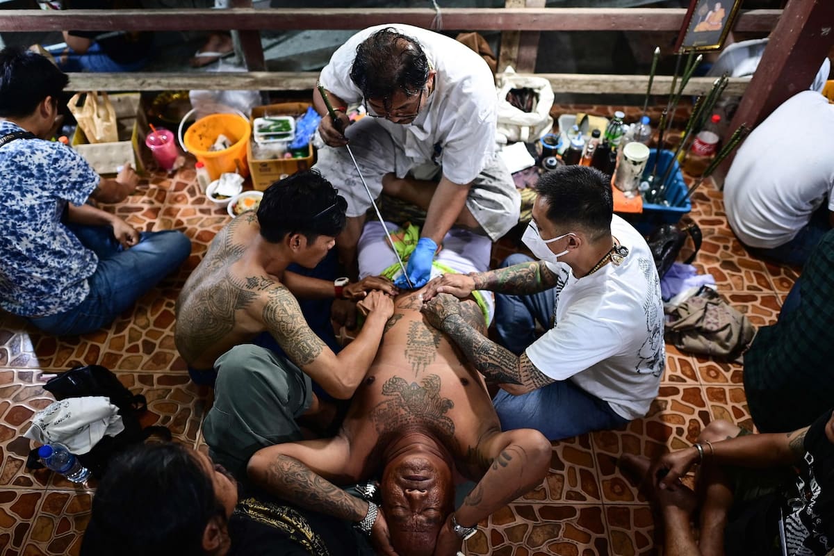 Ojos cerrados, manos en la cabeza, la expresión inescrutable que puede ser dolor o una conciencia plena, tranquila. Aunque a primera vista la imagen remite a una situación quirúrgica, lejos está de cualquier episodio médico. Una mística ancestral envuelve la escena del templo Wat Bang Phra, en Tailandia, donde los devotos budistas, como este hombre, se realizan tatuajes sagrados desde hace miles de años. Bajo el nombre de Sak Yant, los dibujos se inscriben con varas en la piel y funcionan como amuletos protectores. El turismo comercial hizo lo suyo y ya nadie se sorprende de ver a turistas ostentando los mismos tatuajes en las calles tailandesas, ajenos a su significado original. Si el contenido que le asignaron los monjes trasciende las circunstancias y el tiempo sigue siendo, por ahora, un profundo misterio .