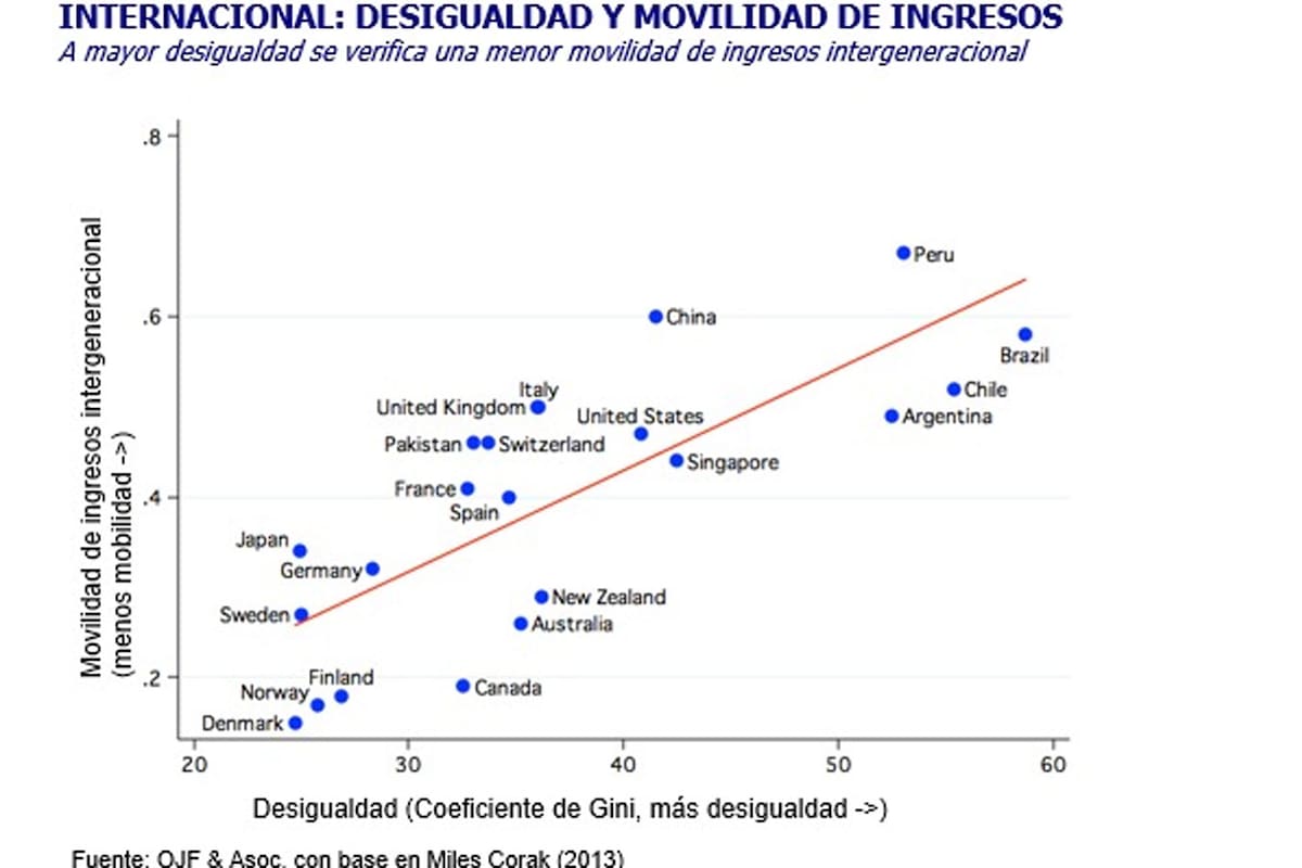 Esto se puede comprobar más exactamente en Chile, Perú y Brasil, donde se aprecia un índice de movilidad social peor que en Argentina y una peor distribución del ingreso.