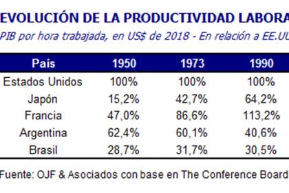 La productividad laboral es la clave para competir y especialmente para una economía abierta, como pretende tener la Argentina. Es evidente que nuestras perspectivas de tener éxito en el mercado internacional dependen mucho de dicha productividad laboral, que si bien es mejor que la de Brasil en promedio, está muy lejos de la EE.UU, Francia o Japón.