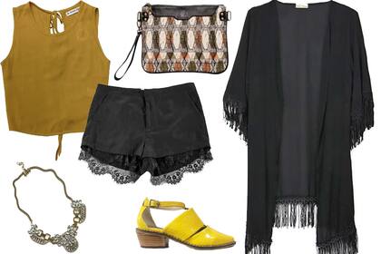 Crop top de Reina Ana $200 / Short de Koxis $295 / Sobre Indybuy $581 / Collar Piropía $ 310 / Zapatos Tila blanco $790 / Kimono Casa rincón $588