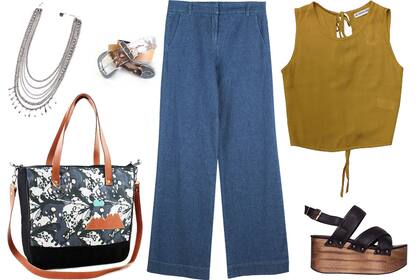 Crop top de Reina Ana $200 / Collar de Dasha Accesorios $290 / Cinturón de lupika handbags en Indybuy $199 / Cartera de Dorothy $790 / Pantalon de Ver $398/ Sandalias de Lucerna $784