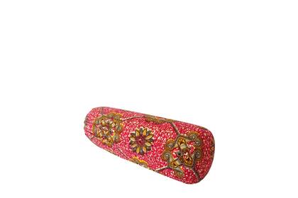 13) Almohadón cilíndrico, con tela africana 100% algodón, con relleno natural; dimensiones aprox 80 cm x 25 cm $580, Pezkoi