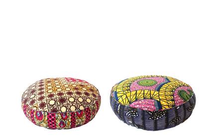 5) Puff de piso redondo 60 cm diámetro, con tela africana 100% algodón, con cierre, lavable. Interior goma espuma $780, Pezkoi