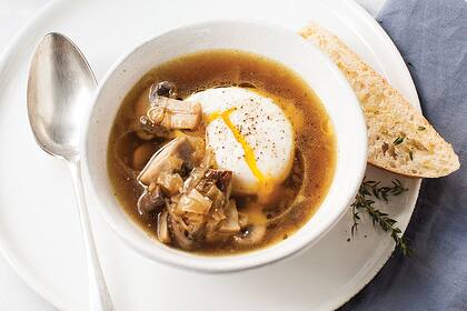 Opcional: servir la sopa con un huevo poché en cada cuenco. ¿Cómo hacerlo? Colocar agua en una olla con un chorrito de vinagre blanco. Llevar a hervor, romper un huevo en un bol aparte, llevar a la olla con agua hirviendo y cocinar por 5 minutos.